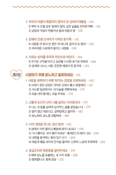 책의 가장 핵심적인 메시지는 ‘감정을 억누르지 말라’는 데 있다. 이선희 작가는 우리가 불편하다고 여기는 감정들, 예를 들면 분노, 슬픔, 질투 같은 것들이 사실은 내면의 소중한 신호라고 설명한다. 감정은 잘못된 것이 아니라, 나의 진짜 욕구를 알려주는 지도와 같다. 따라서 감정을 피하거나 무시하려 하지 말고, 있는 그대로 바라보는 것이 중요하다.