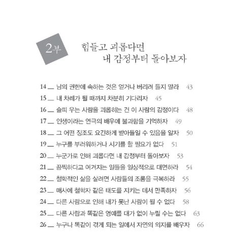 한국 사회에서는 타인의 시선과 기대에 맞추어 살아가는 일이 흔하지만, 이 책은 ‘통제할 수 없는 것에 신경 쓰지 말라’는 에픽테토스의 철학을 통해 진정한 자유의 의미를 다시 생각하게 만듭니다. 철학이라는 단어가 주는 거리감을 줄이고, 실질적인 삶의 방식에 대해 고민하게 만드는 힘이 이 책에는 있습니다. 누구나 한 번쯤 자신의 내면을 들여다보고 싶은 순간, 이 책은 훌륭한 길잡이가 되어줄 수 있습니다.