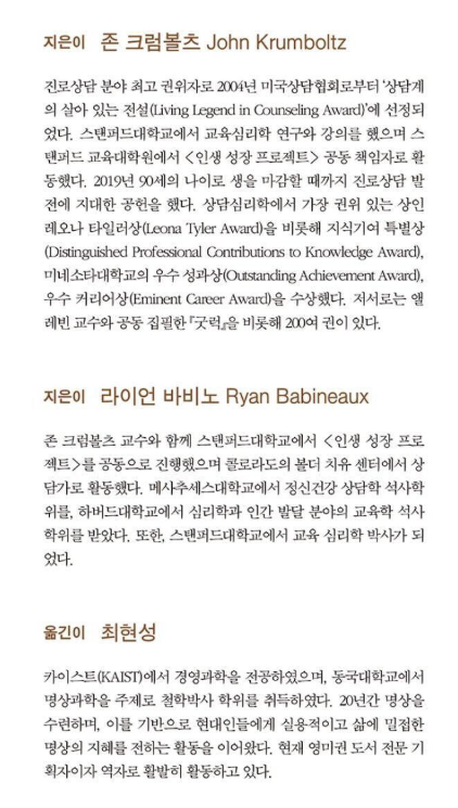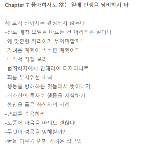 실패를 경험하면 많은 사람이 낙담하기 마련인데요. 이 책은 그 순간을 단순한 좌절로 끝내지 않고, 다음 행동을 위한 ‘데이터 수집’으로 바라보게 도와줘요. 결과적으로 진로 설계에서 중요한 건 유연함이라는 점을 다시 한 번 깨닫게 해줍니다.